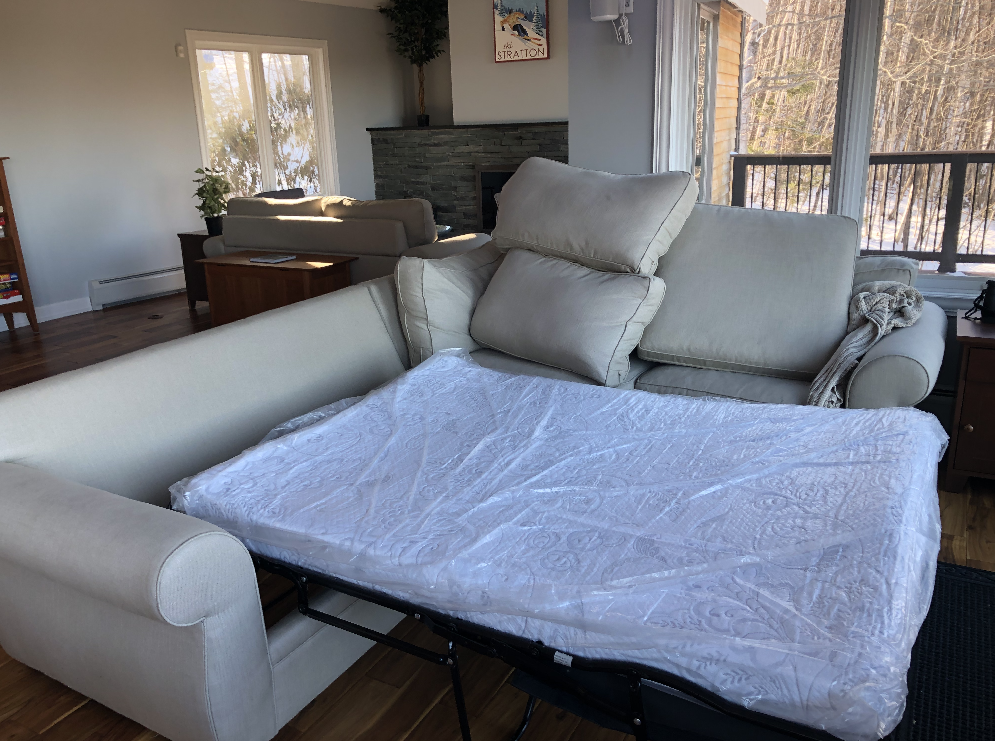 The sofas in the dining room and living room transform into pullout beds to accommodate extra guests.