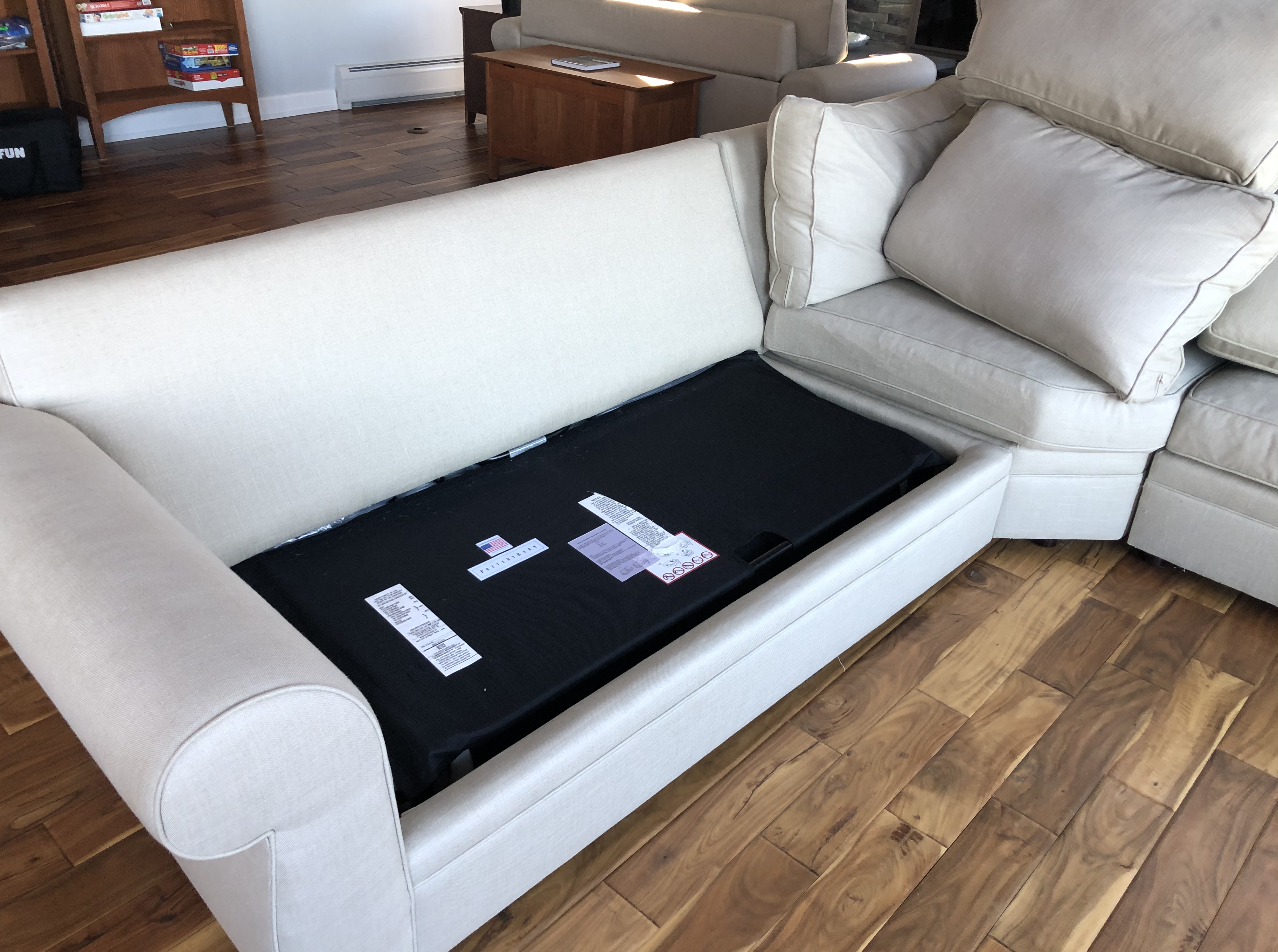 1. Remove all of the cushions off of the sofa, as well as any objects in front of it.