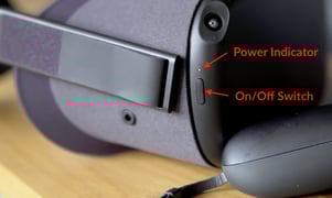 Once the battery is charged, press the Power Switch on the side of the Oculus quest. The power indicator light will let you know if the Quest is booting or not: