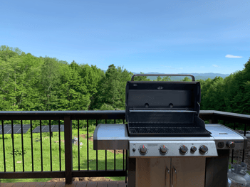 We have a Weber Genesis II S-435 grill on the deck for your use. This has 4 main burners and a side burner.